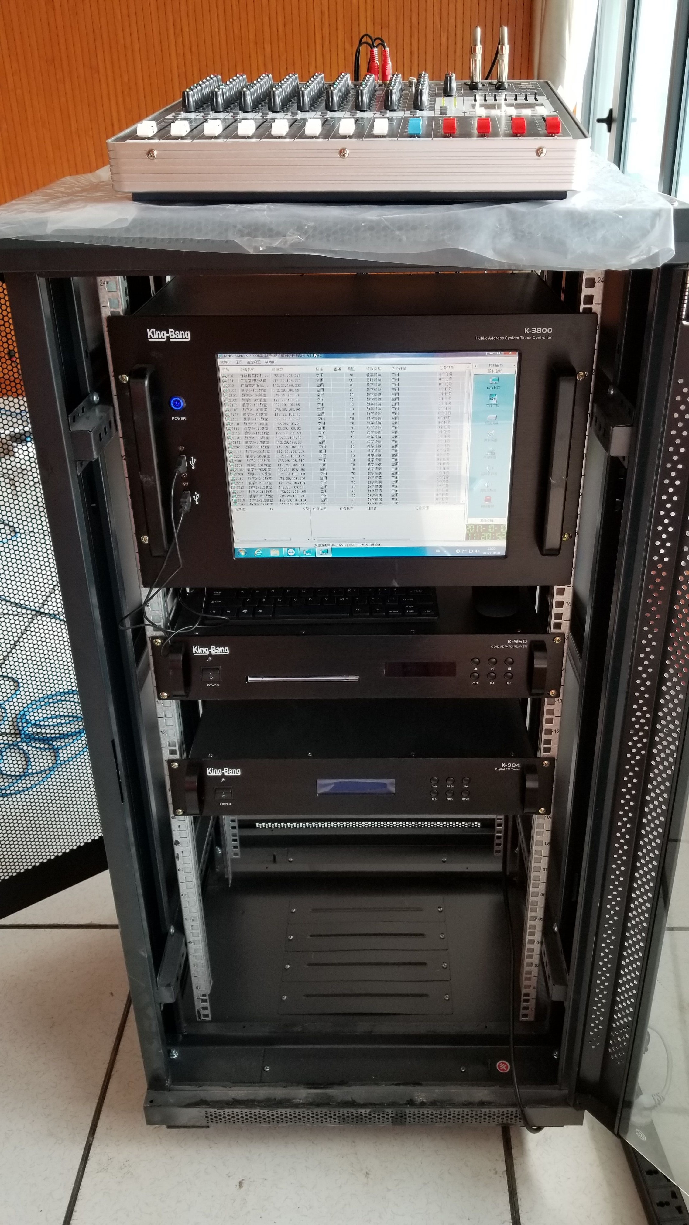 京邦電子(KING-BANG)與客戶溝通后,校方所述公共廣播主要用于各種校園公共場合,如定時打鈴、舉行全校活動、播報通知、升國旗、課間操、課間音樂、表揚先進、召開全校大會(如開學典禮)等。