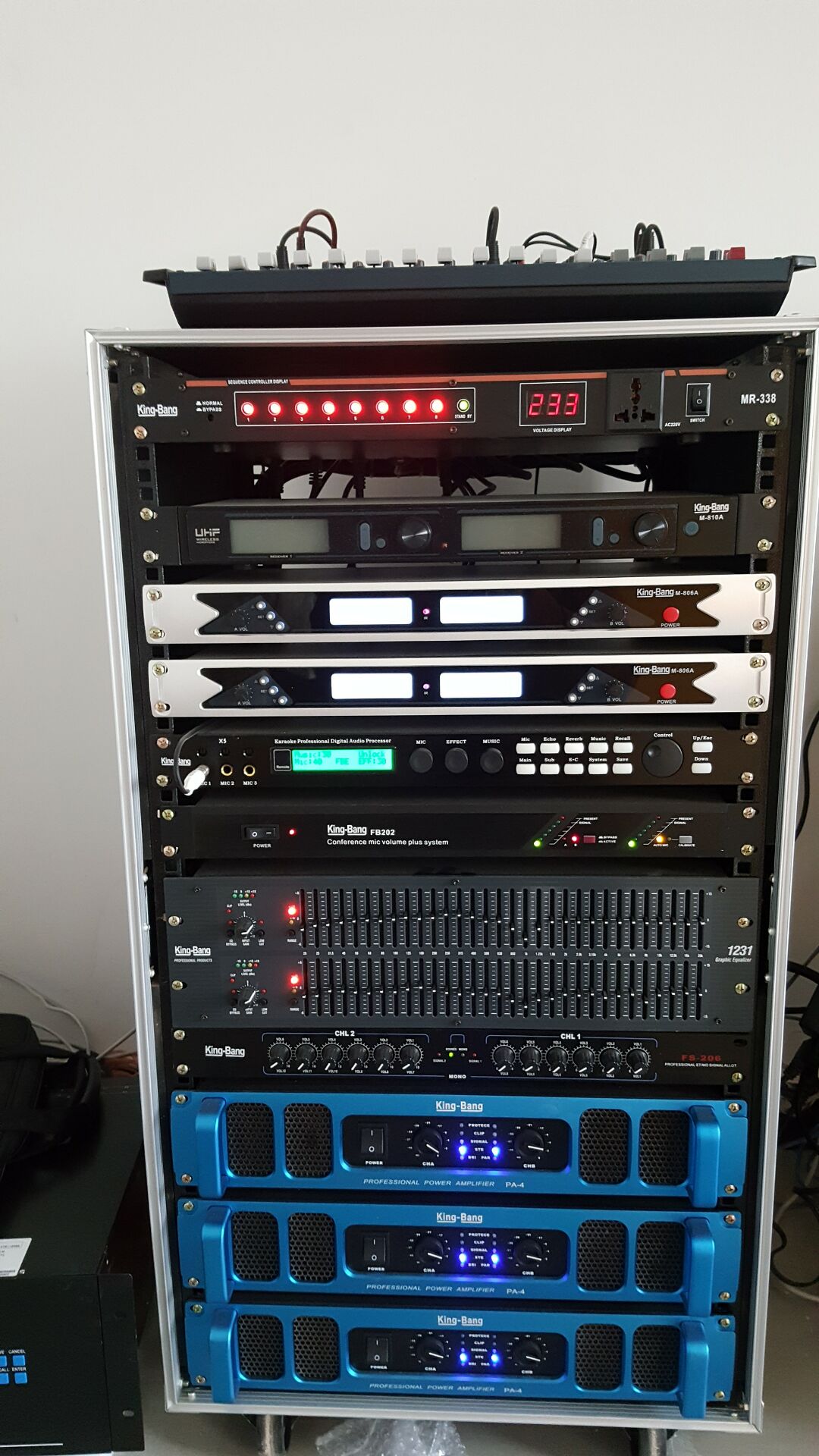 為了保證該校的音響效果,校方對招標的各個環節要求非常嚴格,包括“系統性能穩定、音質出色”等。京邦電子(KING-BANG)特點在擴聲系統的設計上采用了京邦電子品牌F系列的專業音響產品作為擴聲設備,為校方提供了完善的網絡數字化擴聲系統解決方案,實現系統的全數字化,采用了16路調音臺,專業數碼HI房卡拉OK前級,四通道全自動移頻反饋抑制器設備,系統匹配性好、可靠性高。使得整個報告廳聽感上響度足夠語言清晰。